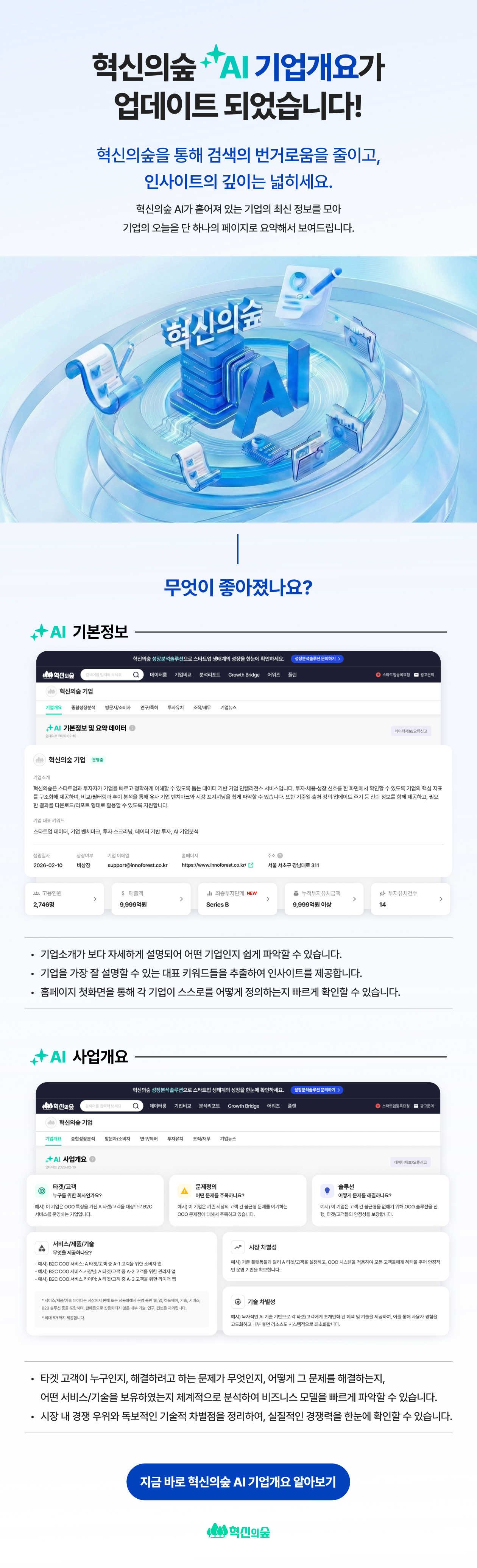 ✨혁신의숲 "AI 기업개요" 업데이트! 스타트업 분석이 더욱 빠르고 정교해집니다!